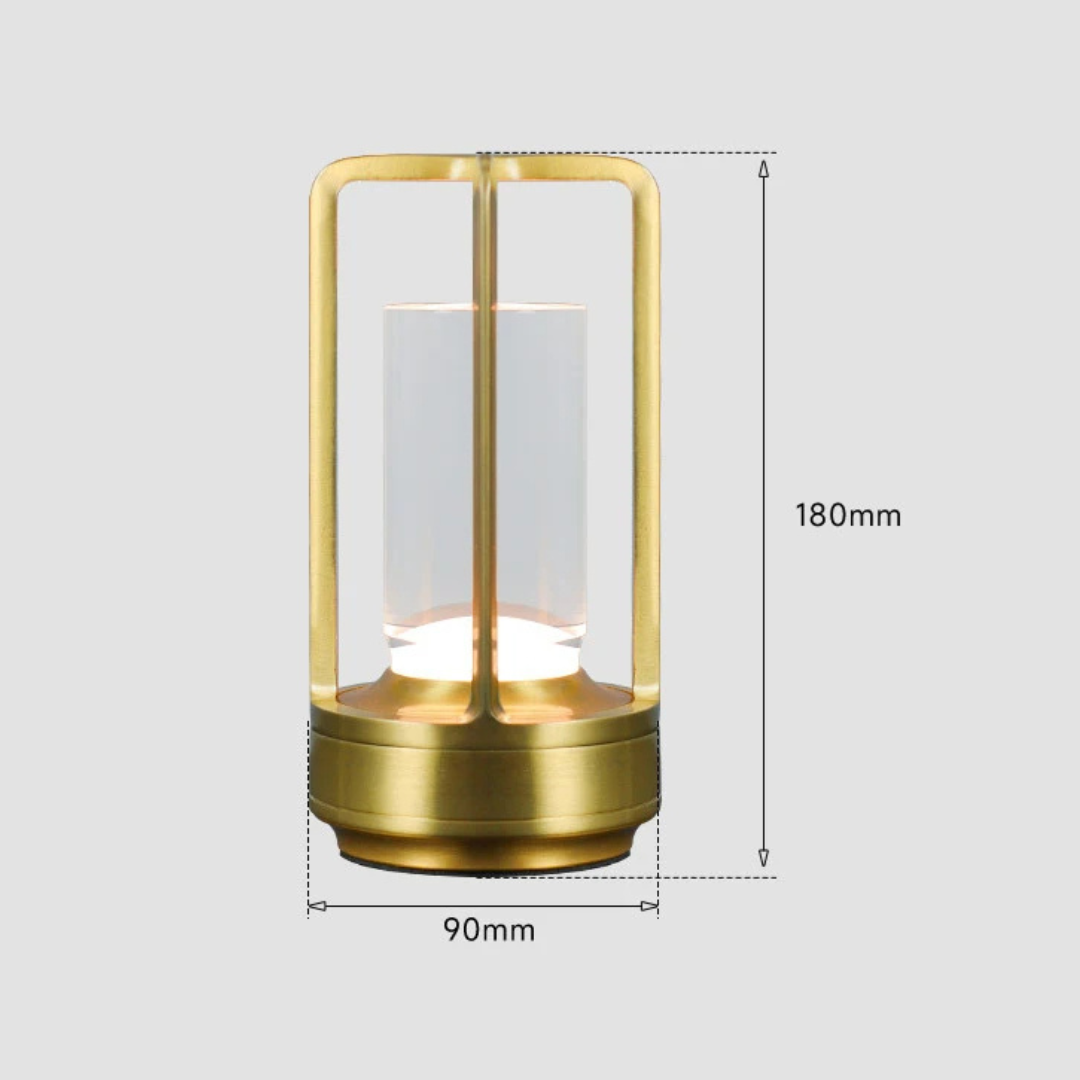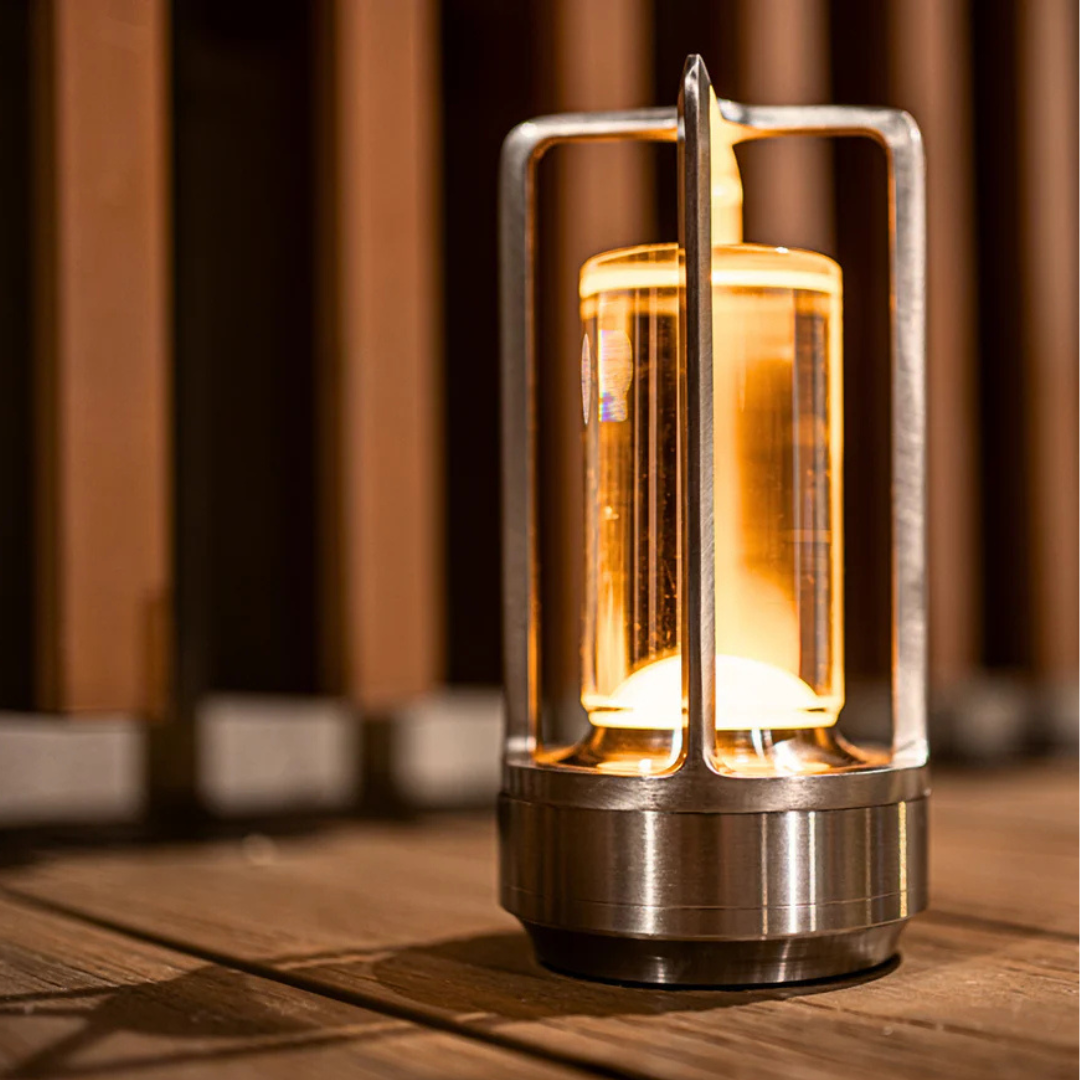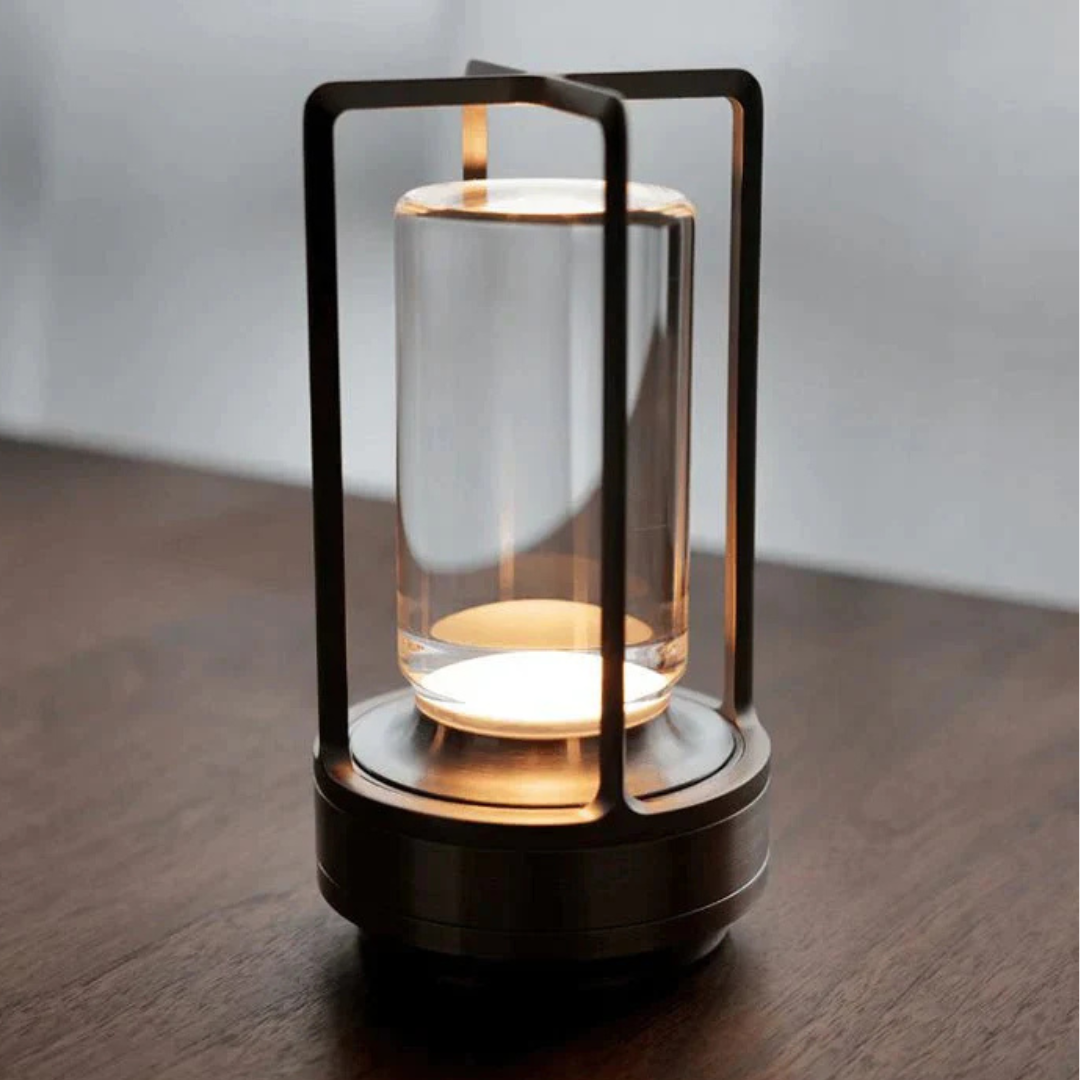 Diese elegante, kabellose LED-Laterne mit kristallklarem Zylinder und hochwertigem Metallrahmen sorgt für eine warme, einladende Atmosphäre – perfekt für Nachtische, Schreibtische oder gemütliche Außenbereiche