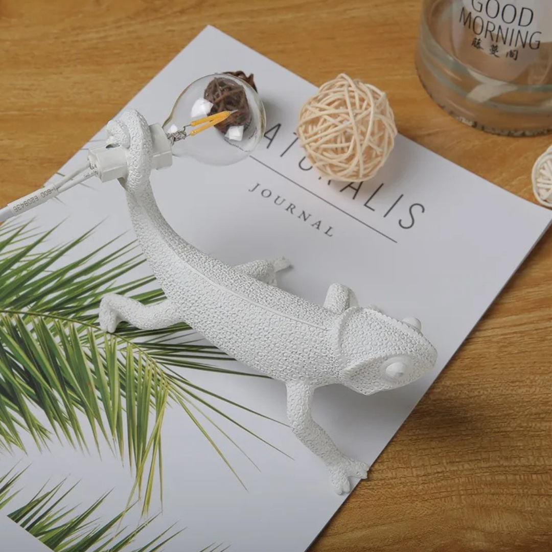 Verleihen Sie Ihrem Zuhause eine verspielte und stilvolle Note mit der LeuchtEchse Chamäleon Lampe.